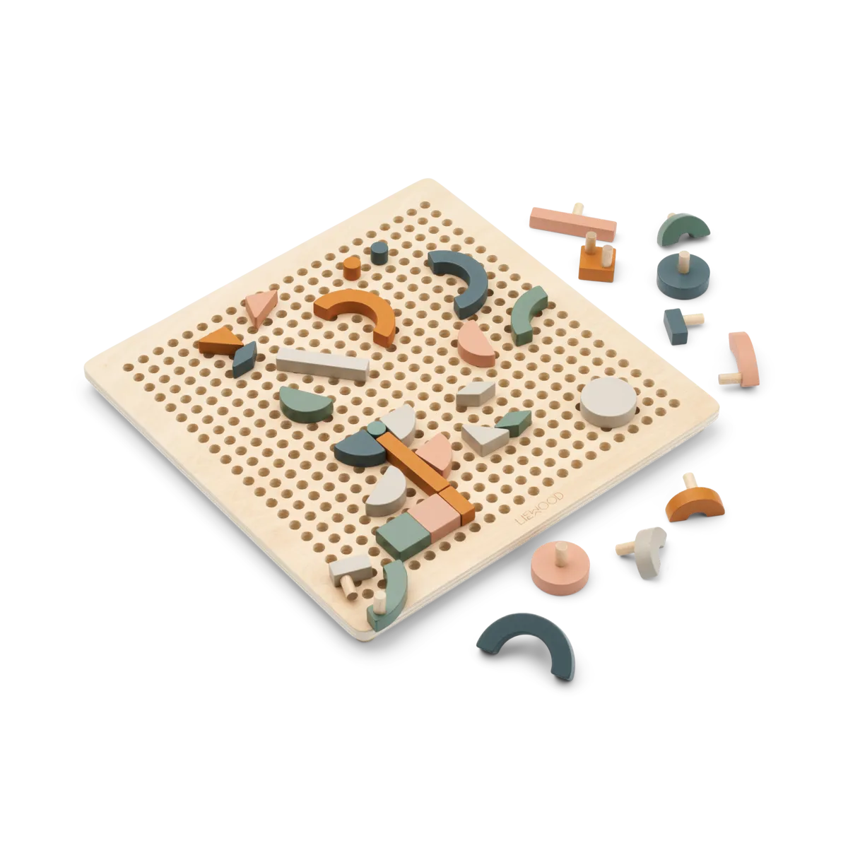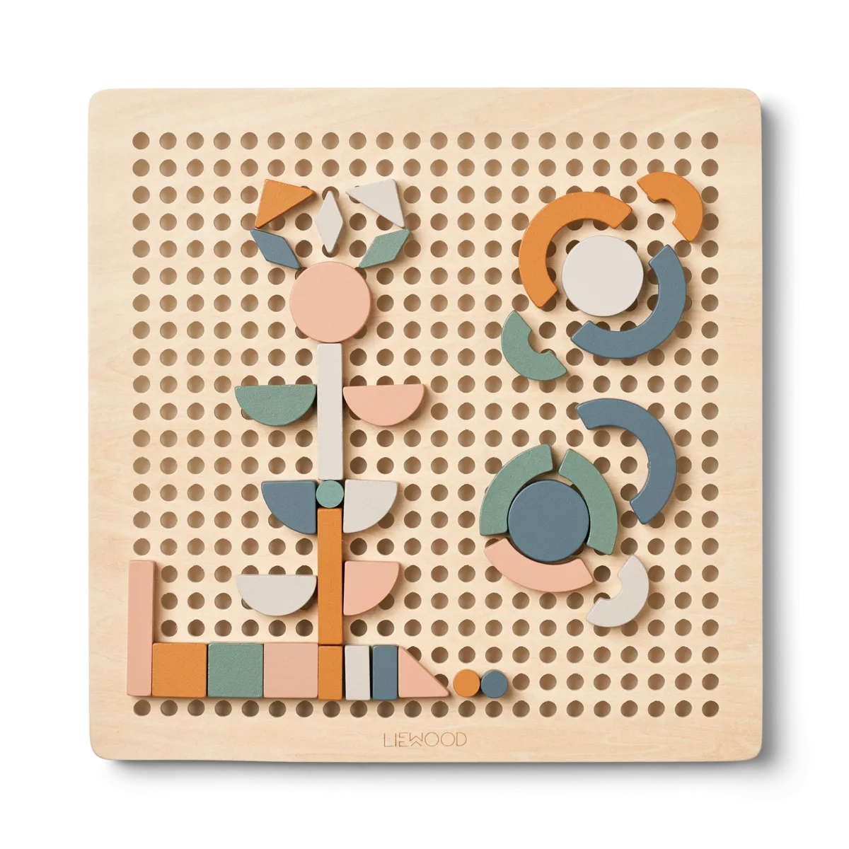 Ożyw wyobraźnię swoich dzieci dzięki układance Cecily od marki Liewood. Z 36 kawałkami w różnych kolorach i perforowaną drewnianą deską do tworzenia wszelkiego rodzaju kształtów, zwierząt, robaków, kwiatów i innych. Idealnie nadaje się do zabawy edukacyjnej i wspiera rozwój fizyczny i intelektualny.