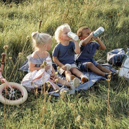 Butelka-bidon 400ml od Little Dutch z kolekcji Ocean powstał we współpracy z holenderską marką Mepal, która specjalizuje się w produkcji akcesoriów do żywności. Posiada higieniczny ustnik otwierany za pomocą przycisku dzięki któremu pozwala najmłodszym pić bez ryzyka zachlapania. Butelka posiada zaczep, który można przywiesić do plecaka. Zakrętka od bidonu jest odkręcana co umożliwia dokładne mycie i łatwe utrzymanie w czystości. W bidonie można przechowywać gorące napoje, ale nie posiada właściwości podtrzymujących ciepło. Sprawdzi się idealnie w szkole, przedszkolu, na wycieczce czy dodatkowych zajęciach sportowych. Jest wygodny i poręczny. Produkt wolny jest od szkodliwych substancji, takich jak BPA czy ftalany.