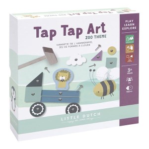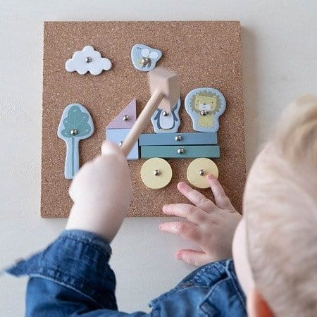Przybijanka Little Dutch. Gra przybijanka to kultowa zabawka, którą zna wielu rodziców. Jest to świetna zabawa, która zainteresuje dziecko na długie godziny. Zestaw składa się z dobrej jakości korka w kształcie kwadratu, młoteczka, małych gwoździków, kolorowych elementów geometrycznych oraz zwierzątek do układania oraz kart z przykładowymi wzorami. W sumie w zestawie znajdują się 162 elementy. Zabawka ćwiczy koordynację, małą motorykę, uczy kształtów i kolorów, ćwiczy prawidłowy chwyt, koncentrację oraz pobudza wyobraźnię dziecka.