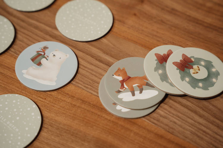 Gra Memo X-mas od Little Dutch. Święta to świetny czas na wspólne gry! Czy pamiętasz miejsca kart na stole? Ta łatwa w obsłudze gra memory jest zarówno zabawna, jak i edukacyjna. Okrągłe karty zawierają piękne ilustracje o tematyce zimowej i świątecznej, od bałwanów aż po renifery. Gra przeznaczona jest dla 1-4 graczy. Dokładnie potasuj karty i połóż je zakryte na stole. Odkrywaj jedna po drugiej starając się dopasować je w pary. Gracz, któremu uda się dopasować najwięcej kart - wygrywa. Gra oferuje niekończącą się rozrywkę i przyczynia się do rozwoju pamięci i ważnych umiejętności, takich jak koncentracja oraz umiejętność społeczne. Świetny pomysł na prezent dla każdego trzylatka.