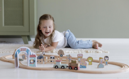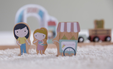 Zestaw do kolejki ZOO Little Dutch jest fantastycznym sposobem na długie godziny ciekawych zabaw. Zestaw zawiera bramę wejściową do Zoo, stoisko z lodami, samochód dzięki którym można przewozić figurki zwierząt, zagrody dla zwierzaków, zwierzątka i ludziki. Elementy są starannie wykonane z drewna z certyfikatem FSC (Forest Stewardship Council), malowane są bezpiecznymi farbami na bazie wody. Piękna, delikatna kolorystyka. Idealny zarówno dla dziewczynki, jak i dla chłopca.
