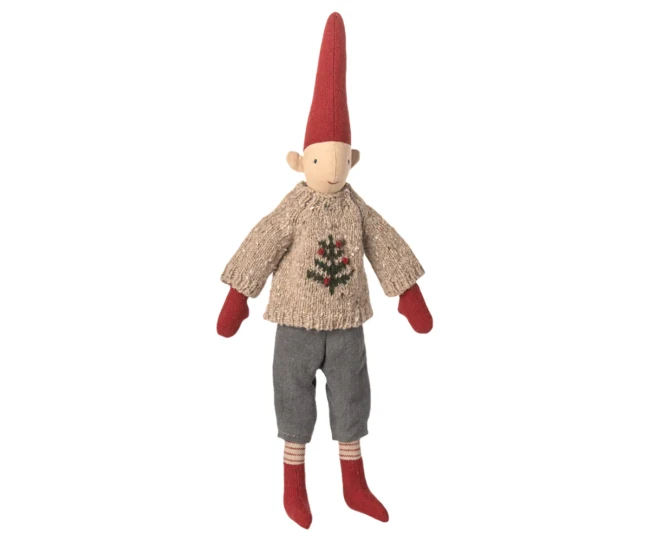 Kolekcja Mailegs pixy zawiera wiele różnych stylizacji - a wszystko to ubrane w ładne świąteczne ubrania wykonane z ekskluzywnych materiałów. Są urocze i można je mieszać i dopasowywać w różnych rozmiarach i kolekcjach. Rozmiar 1 posiada magnes w dłoniach i lewej stopie.