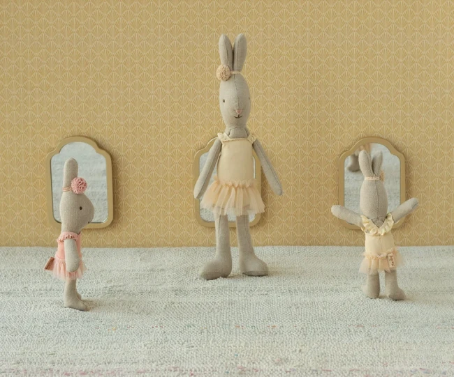 Maileg króliczek baletnica w rozmiarze 1 pełna wdzięku zabawka, dla miłośnika baletu i przytulanek. Ubrana w kremowy strój baletnicy z tiulową spódniczką i ozdobą wokół głowy, gotowy na występy. Zabawka,a zarazem dekoracja pokoju. Skompletuj całą kolekcję Maileg. Pamiątka na lata.