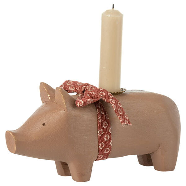 Maileg świecznik Wooden Pig medium – old rose