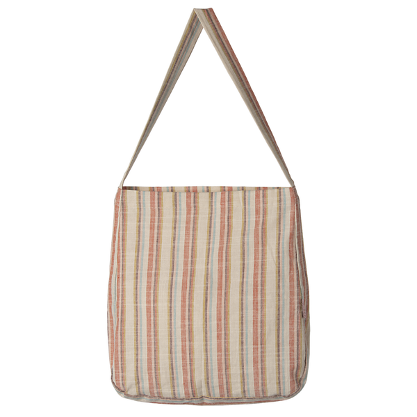 Piękna torba typu tote z wieloma paskami wykonana z miękkiej bawełny/lnu. Zwróć uwagę na piękne logo Maileg na torbie, ponieważ każdy produkt Maileg ma dodatkowy detal. Idealna mała torba do zabrania ze sobą.