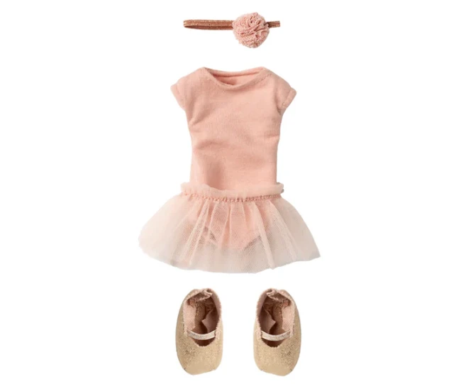 Strój baletowy, buciki, opaska w kolorze różowym.