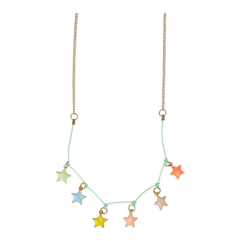 - Naszyjnik gwiazda z miętowym woskowanym sznurkiem i złotym łańcuszkiem