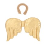 Piękne przebranie aniołka Meri Meri! Zestaw ze wspaniałymi skrzydłami, wykonanymi ze złotego tiulu z połyskującymi paskami na ramionach i przepiękną błyszczącą, złotą opaską w gwiazdki.