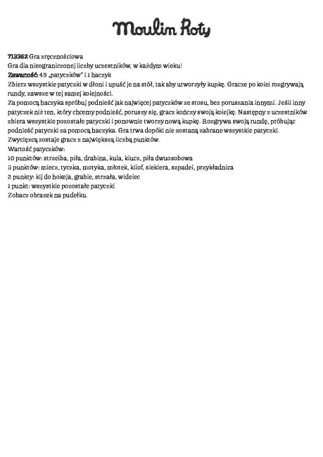 Zawartość: 49 patyczków i 1 haczyk do łowienia