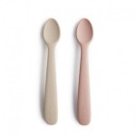 Mushie - 2 łyżeczki silikonowe dla dzieci do nauki samodzielnego jedzenia - Blush & Shifting Sand