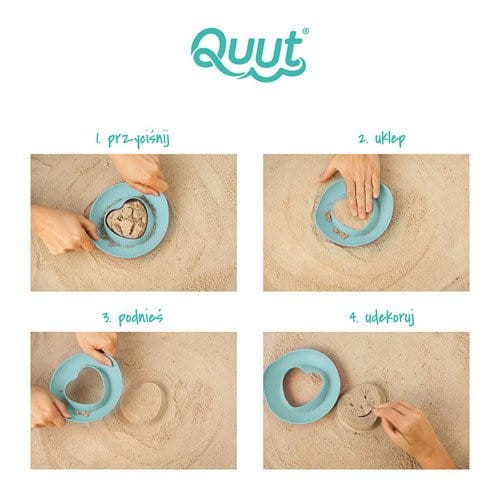Foremki wielofunkcyjne Magic Shapers belgijskiej marki Quut przyciągają wzrok niebanalnym designem i oryginalną kolorystyką. Lekkie, wygodne do trzymania przez dziecko, w kształcie okrągłych dysków z otworami o różnych kształtach pośrodku - do wyboru jest jeden z 4 wzorów: granatowa foremka ma otwór w kształcie rybki, turkusowa – rozgwiazdy i dodatkowo posiada dziurki, dzięki którym może pełnić funkcję sitka, żółta – otwór w kształcie słońca, a jasnoróżowa – w kształcie serca. Foremki służą do odciskania kształtów, na zewnątrz np. w piasku czy śniegu, czy piasku kinetycznego w domu. Po przyciśnięciu foremki do powierzchni, wypełnia się ona, np. piaskiem, dzięki czemu można „wycisnąć” dany kształt, który następnie dziecko może dodatkowo jeszcze ozdobić. Tego typu sposób znacznie ułatwia dziecku „lepienie babek”. Foremki unoszą się na wodzie, a ich szerokie dna sprawiają, że są stabilne. Dwie foremki można połączyć ze sobą (za pomocą systemu click-and-store) dla wygodniejszego przenoszenia lub przechowywania. Gwarantują inteligentną aktywność w domu i na świeżym powietrzu, i to przez cały rok. Sprawdzą się bowiem nie tylko do zabaw w piasku (w tym w piaskownicy), ale także w wodzie (w tym w wannie), śniegu, ogrodzie czy domu.