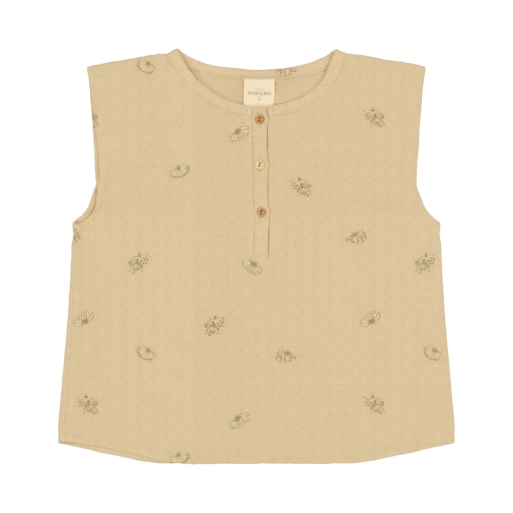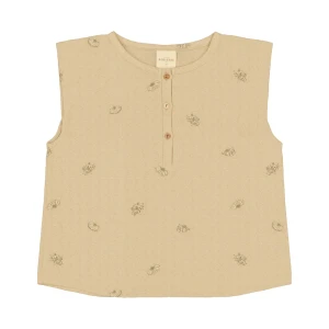 Genderowa bluzka bez rękawów z gazy z płomienistej bawełny.