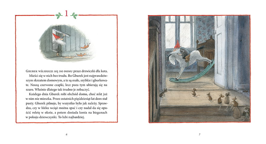 Gburek, skrzat domowy zamieszkujący opuszczoną zagrodę, zapala pierwszą świecę w świeczniku adwentowym. Gdy następnego dnia wychodzi przed dom, wiatr zrywa mu z głowy czapkę. Gburek kopie ze złości furtkę, a wtedy odpada z niej tablica zawieszona przez ludzi wiele lat temu. Tablicę również porywa wiatr i niedługo potem znajdują ją mieszkające w Wielkim Lesie zwierzęta. Wrony rozszyfrowują tajemniczy napis na tablicy i orzekają, że już niedługo w lesie zjawi się gość. Rozpoczynają się gorączkowe przygotowania…